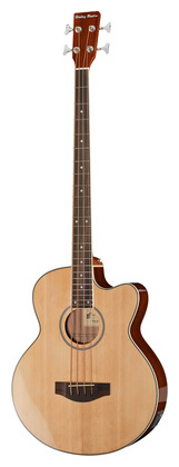 Super Jumbo Kivágott testű Lucfenyő előlap Nyak, hát és oldal Mahagóni fából Rózsafa fogólap 22 érintővel Menzúra: 815 mm Nyeregszélesség: 42 mm 2-utas nyakpálca Krómozott Die-Cast mechanika Beépített hangszedő 4-sávos EQ-val és beépített hangolóval Szín: natur Súly: 4600g