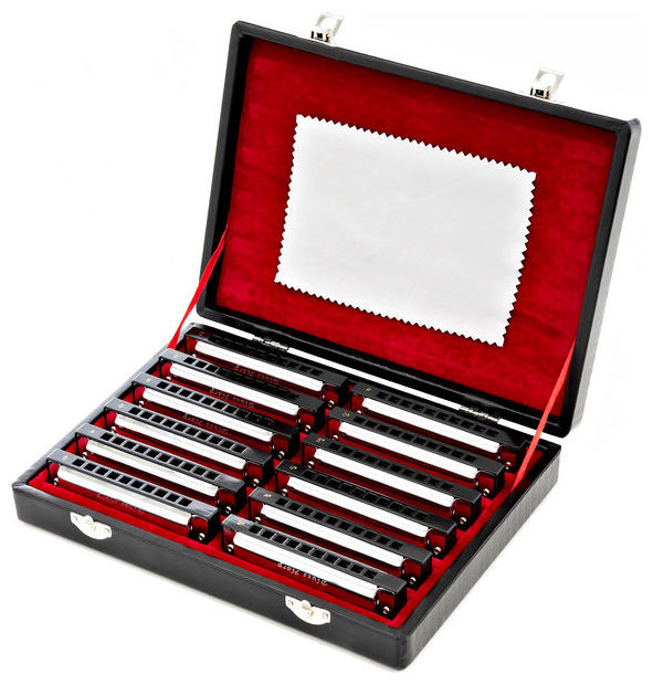 12 db-os szájharmónika szett Minden hangnemhez Bőröndben