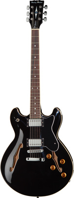 Semi-Hollow Juharfa test Ragasztott kanadai juharfa nyak Rózsafa fogólap Rádiusz: 350 mm 22 érintős Menzúra: 628 mm Nyeregszélesség: 43 mm 2-utas nyakpálca 2 Vintage Style Humbucker hangszedő 2 hangerő 2 hangszín 3-utas kapcsoló Tune-O-Matic Krómozott fémrészek Zárt mechanika Húrok: 010-046 Szín: magasfényű fekete