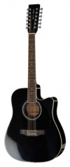 Western 12 húros Kivágott testű Lucfenyő előlap Hát és oldal mahagóni fából Beépített hangszedő 4 sávos EQ Fekete Súly:3500g