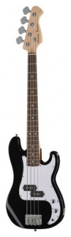 Shortscale bundozás Csavarozott jávorfa nyak Nyárfa test Rózsafa fogólap 19 érintős 2-utas nyakpálca Menzúra: 762 mm Nyeregszélesség: 42 mm 1 PB-Style hangszedő 1 hangerő 1 hangszín Krómozott fémrészek Húrok: 040-095 Szín: fekete Súly: 3600g