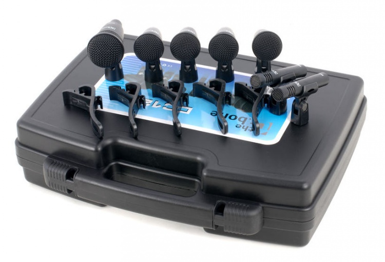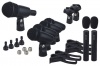 1 db dinamikus DM1 nagydob mikrofon (vesekarakterisztika, 20Hz-15kHz) 4 db dinamikus DM2 pergő/tom mikrofon (vesekarakterisztika, 70Hz-13kHz) 2 db kondenzátor overhead/lábcin mikrofon (vesekarakterisztika, 9-52 V fantomtápos, 40Hz-17kHz) 4 db mikrofonfelfogató 2 db szélfogó Koffer Súly: 3100g